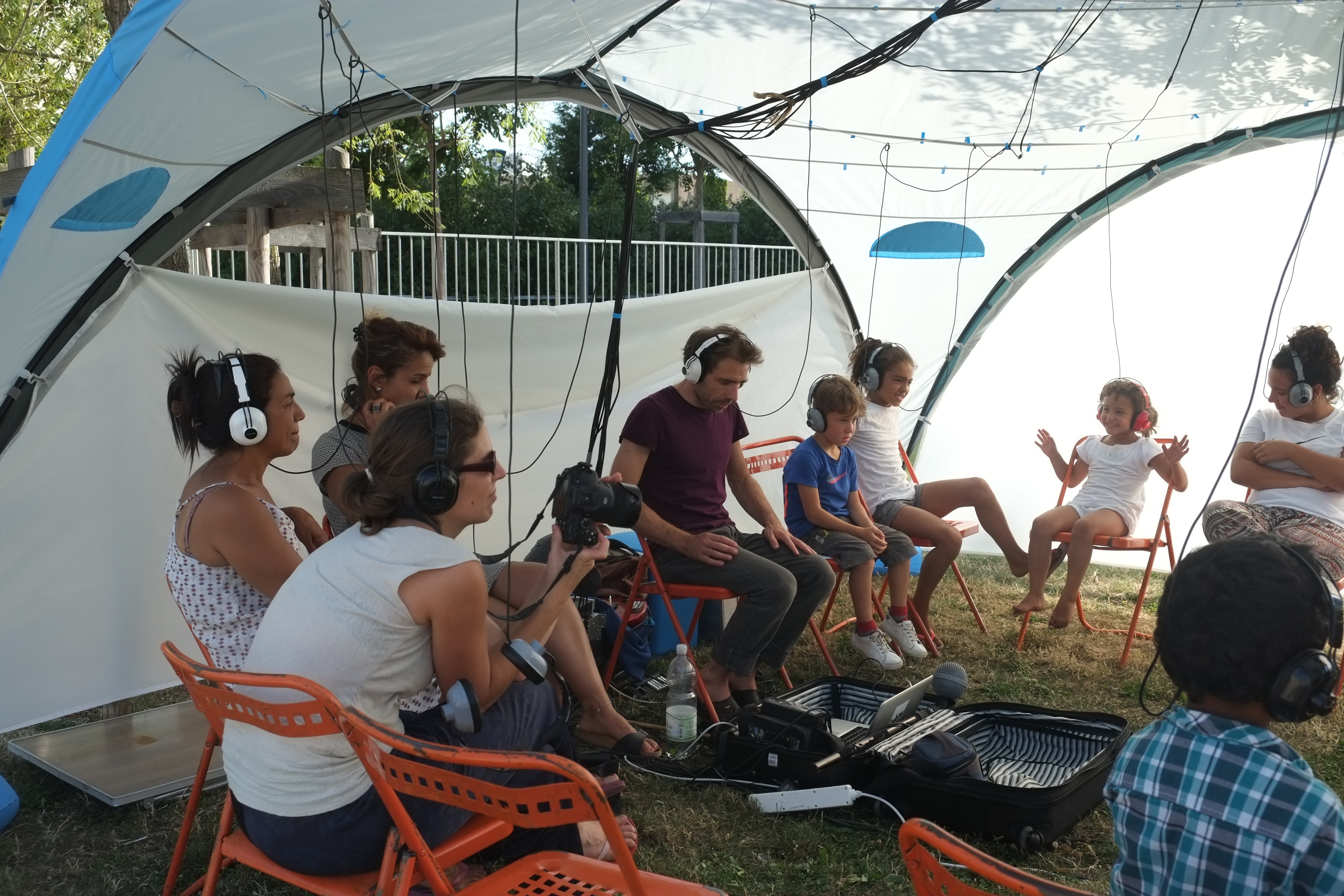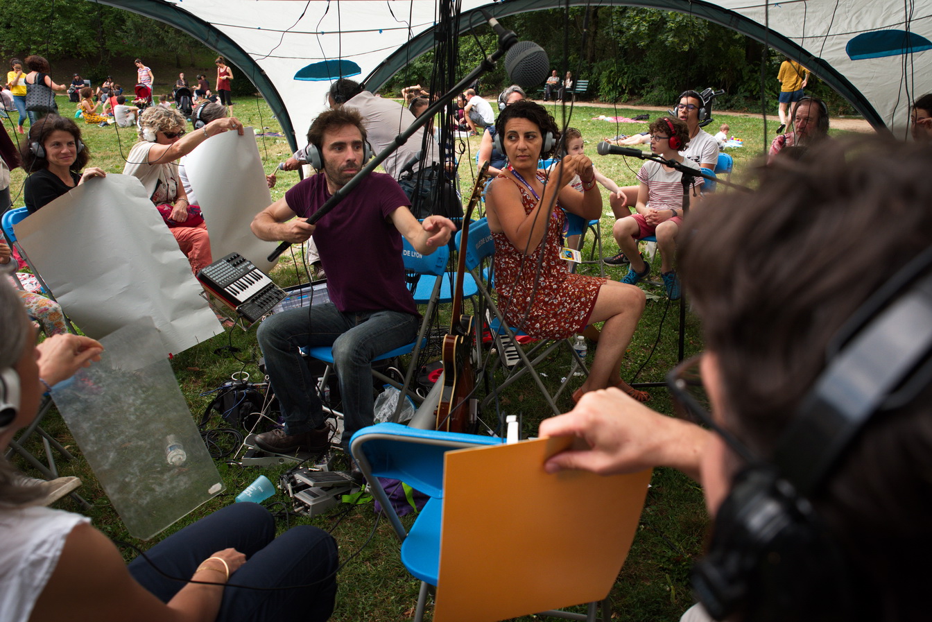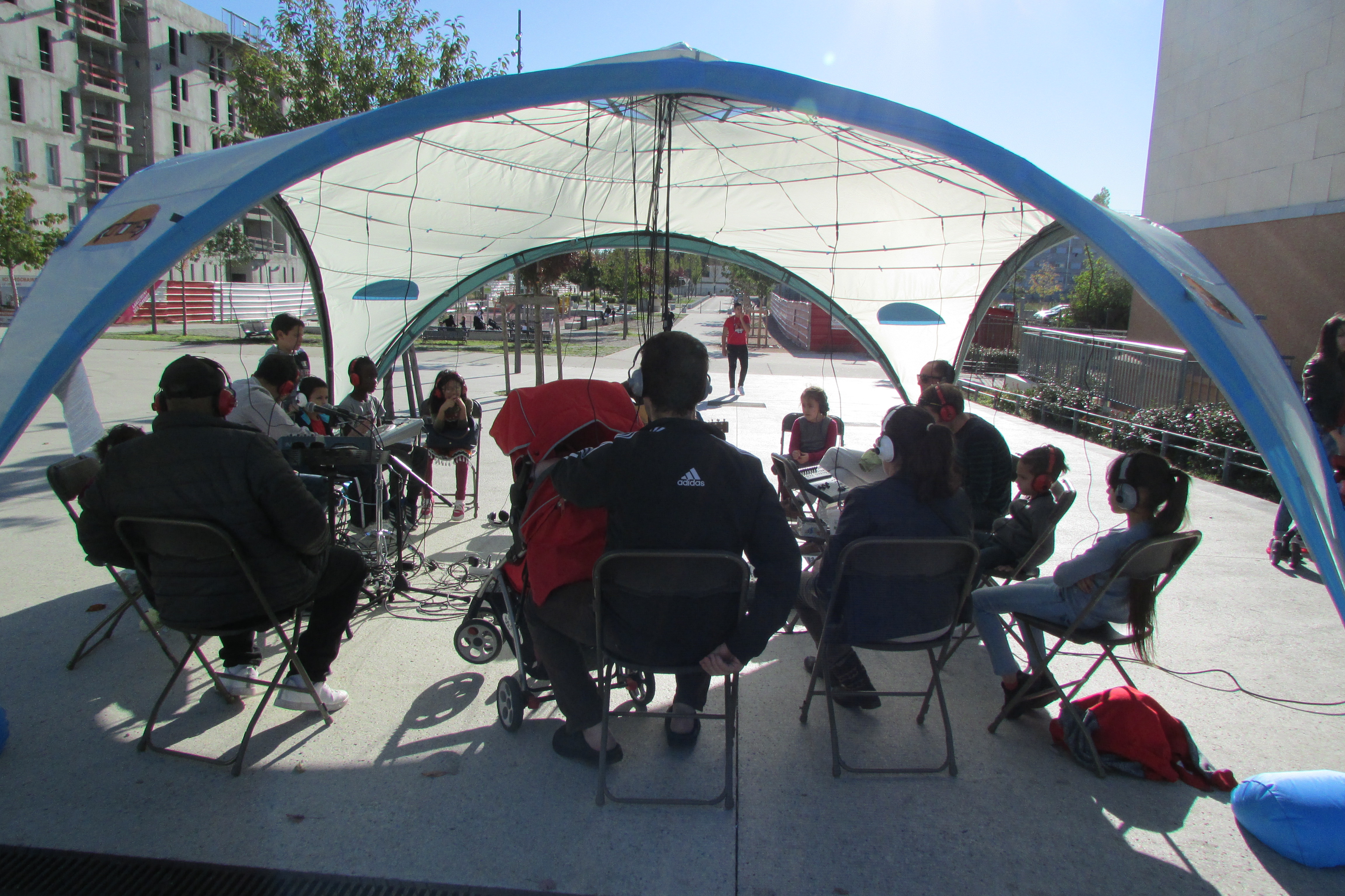 Le DhOME concert sous casques peut accueillir jusqu’à 27 spectateurs et 3 musiciens.Placés au centre de la structure, les musiciens donnent un concert mêlant jeu musical et captations sonores en direct. Le public, installé en cercle autour des musiciens reçoit la musique à travers les casques. Cette situation insolite instaure un rapport intimiste et immersif; une écoute au creux des oreilles.